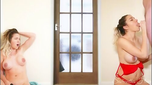 She watches her TWIN stepSISTER fuck her DAD