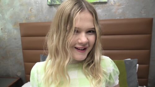 This video features a petite 18 yr old with green eyes and freckles