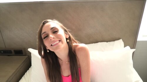 Watch this petite teen with green eyes and freckles suck cock