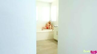 Step brother is shooting his naked sister bathing then she inviting for fuck in bathroom sucking dick to satisfy her step brother